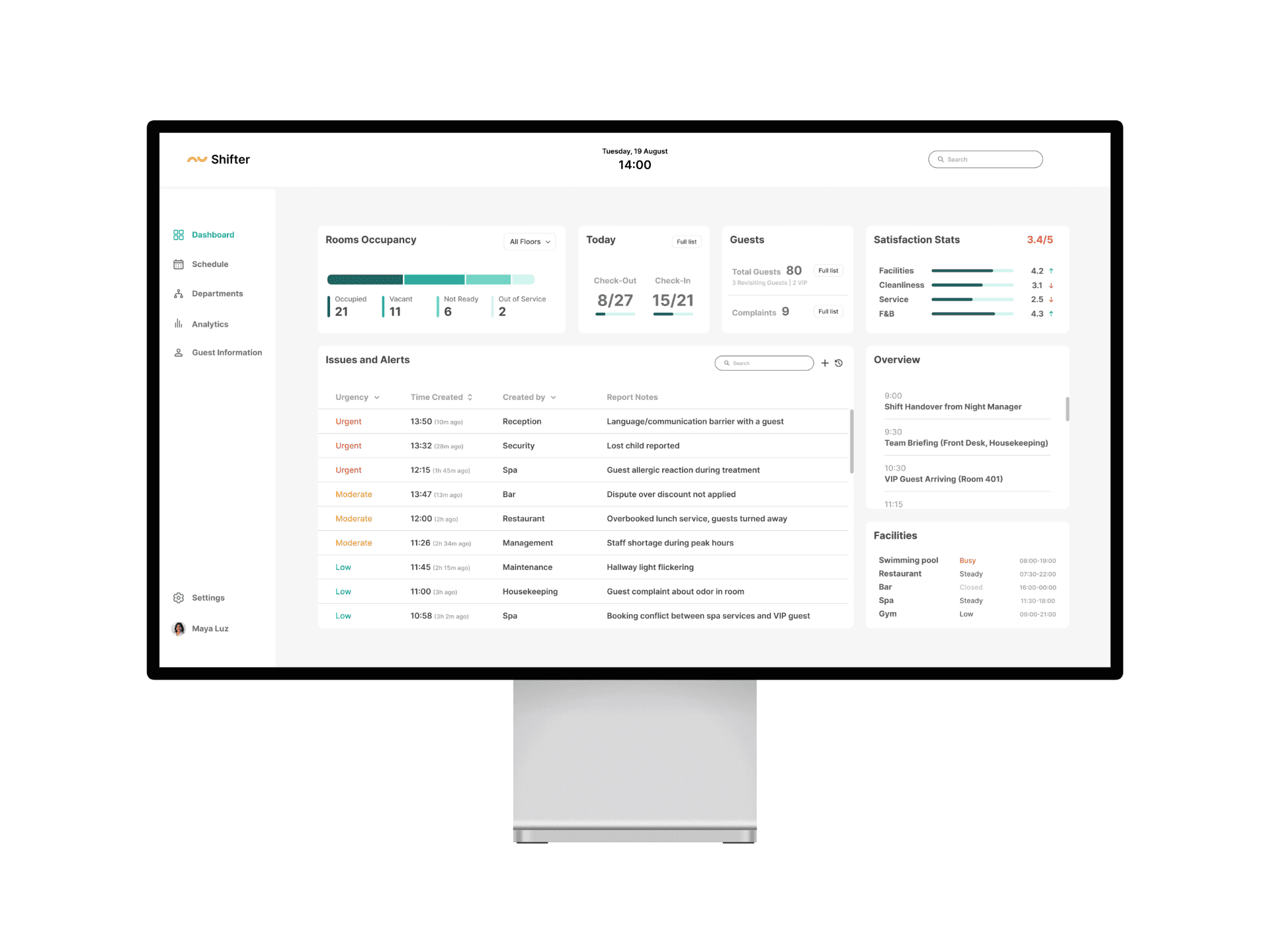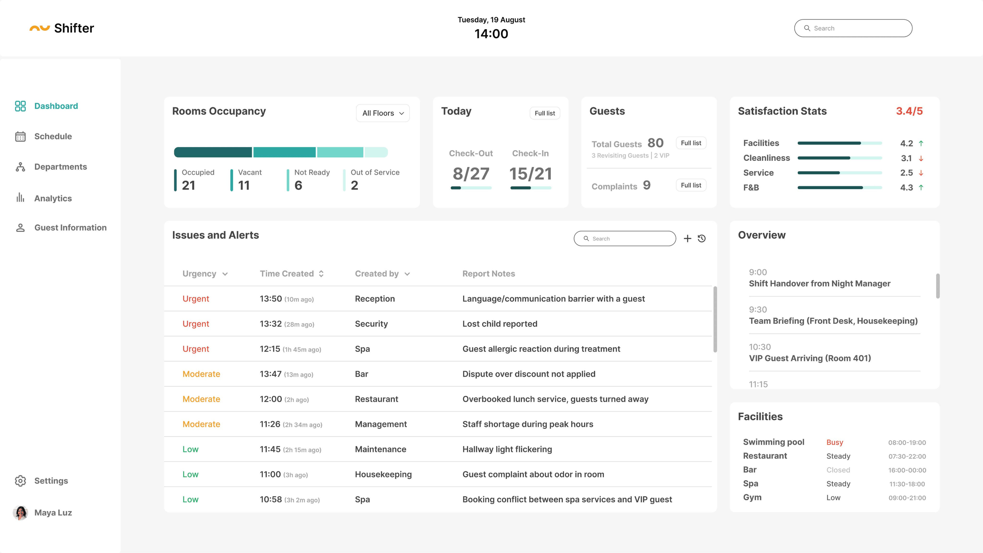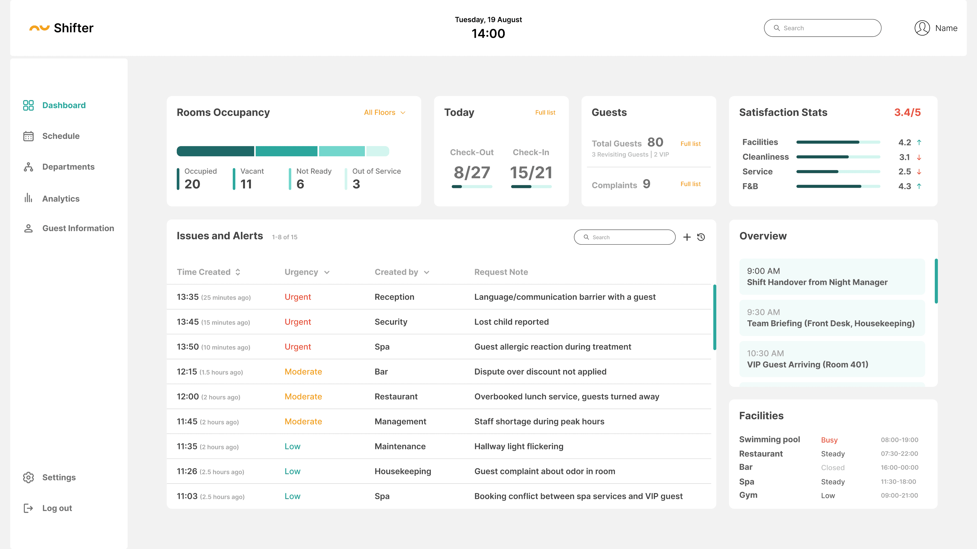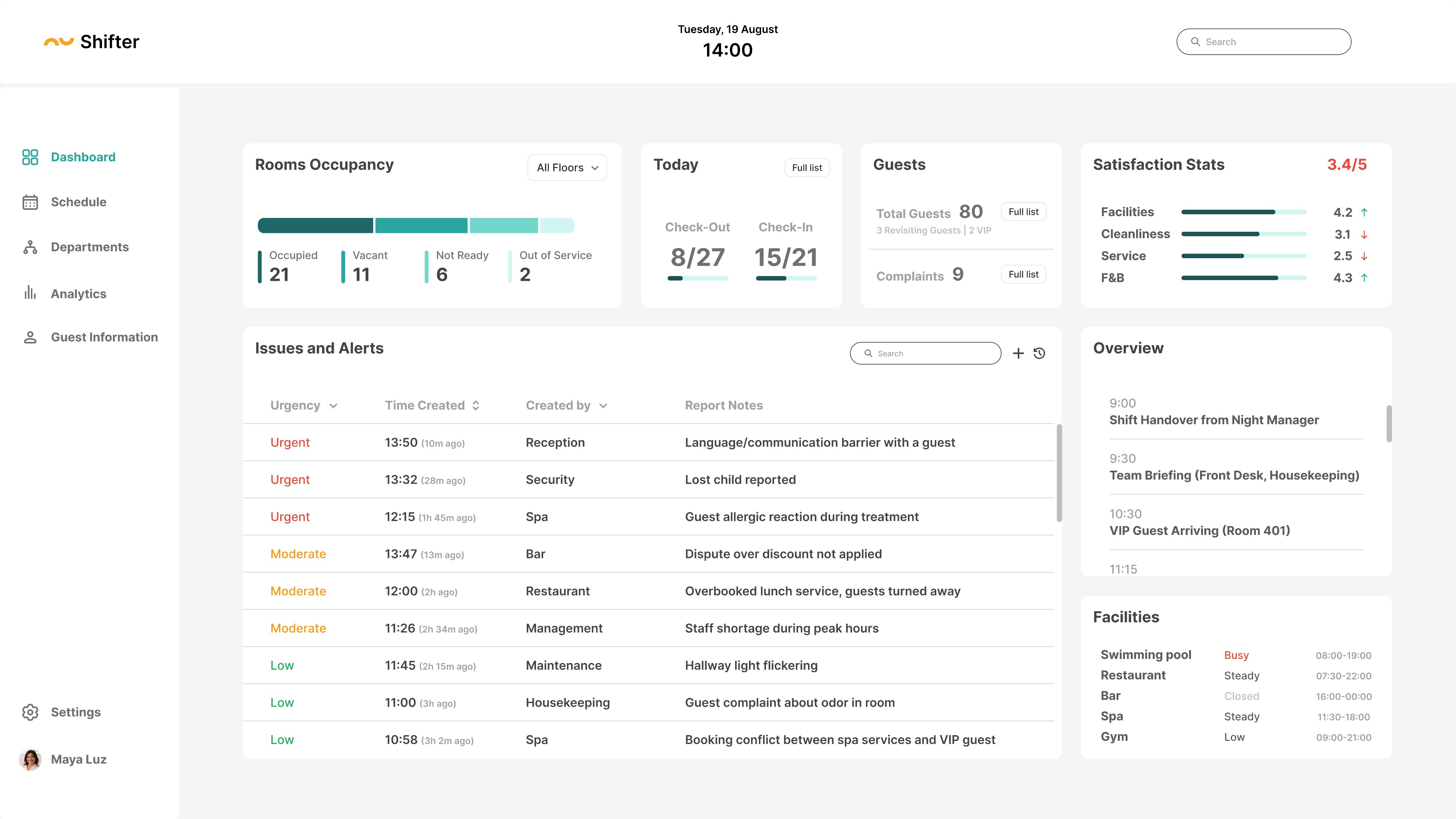 Shifter is a Hotel Operations Dashboard designed to streamline daily shift management.