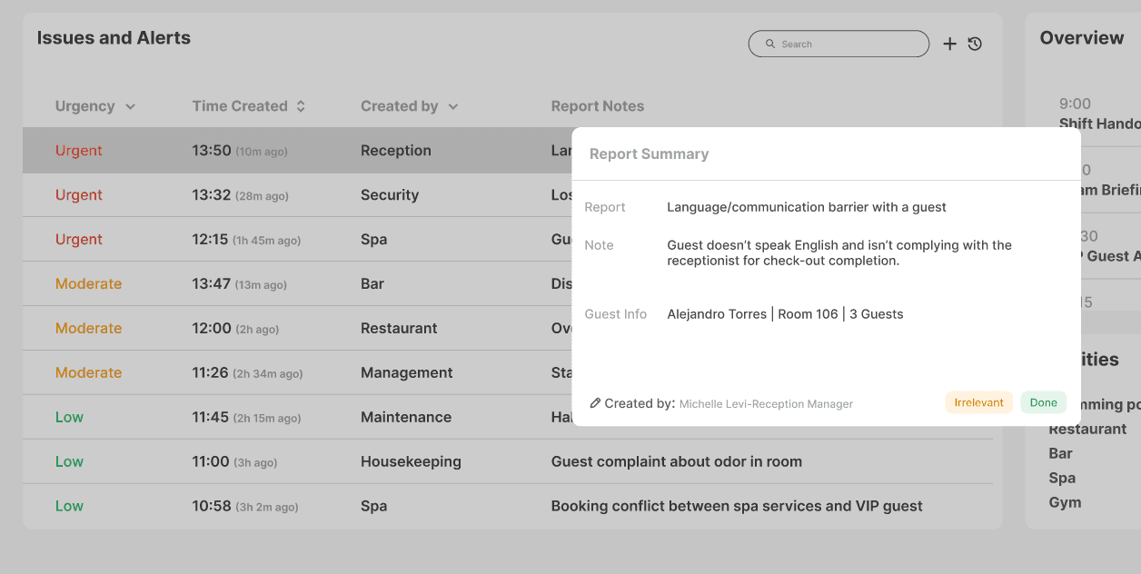 Stay informed with a clear, real-time overview of hotel activity